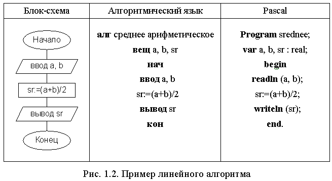 Рассмотрим подробнее три основных вида алгоритмов: линейный, разветвляющийся