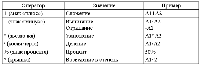 называют знак или символ, задающий тип вычисления в формуле. Существуют