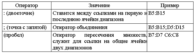 ссылок используют для описания ссылок на диапазоны ячеек.