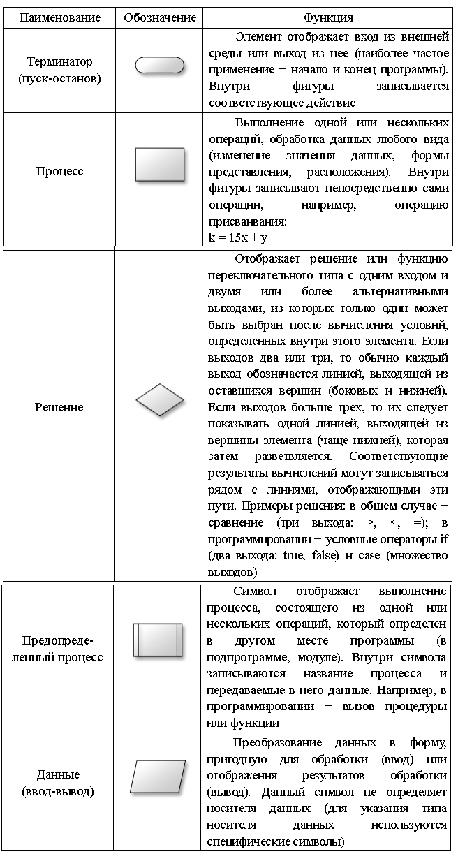 элементы схем алгоритма представлены в табл. 1.1.