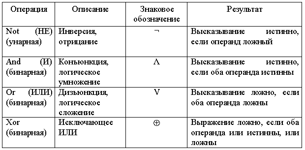Логические операции (функции) представлены в табл. 2.4.