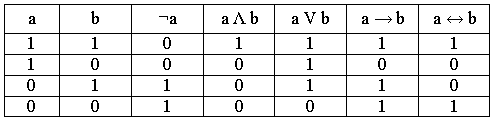 Таблица истинности основных логических операций