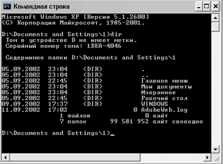 будут работать с командной строкой Windows XP. Командная строка представляет