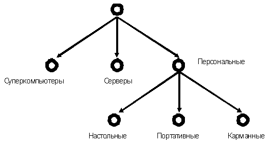 иерархической модели, классифицирующей компьютеры, имеются три уровня.